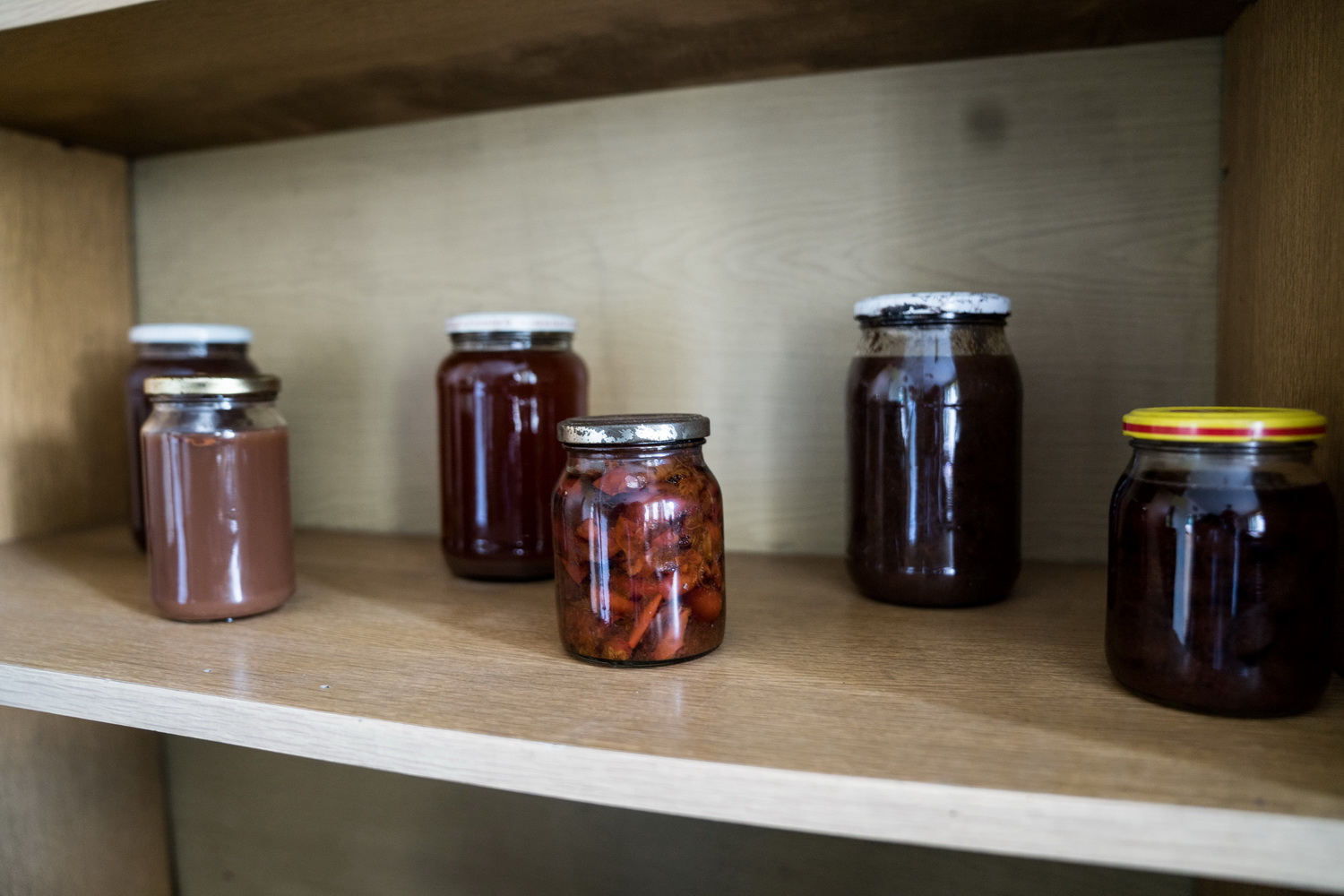 Rewelacyjnie prezentuje się biurko (należące do Jacka Rządzickiego) z książkami pisarki i stający w tym samym pokoju regał na wysoki połysk (autentyk!!!), wypełniony… przetworami wykonanymi rękoma pani Janinki!