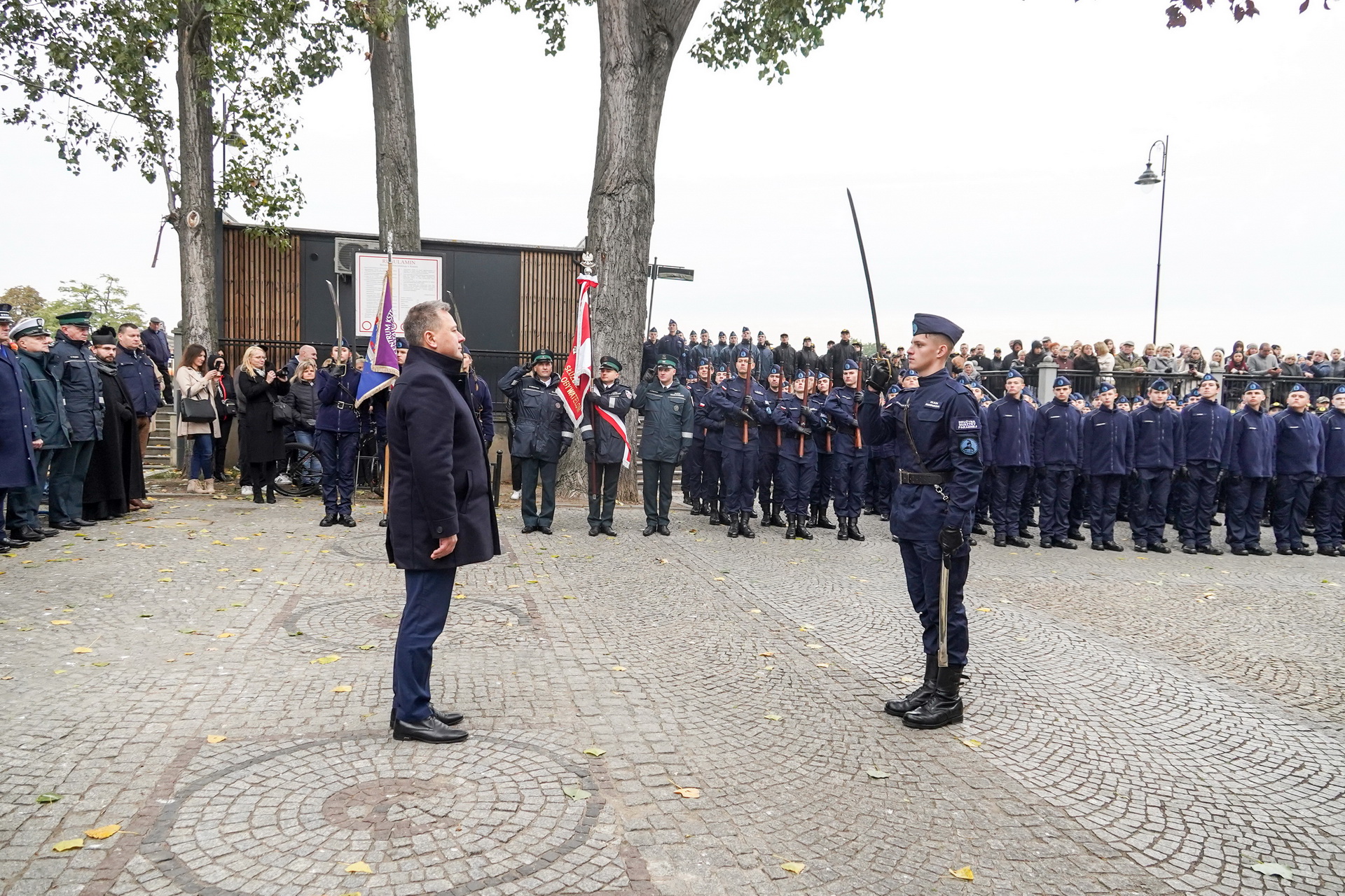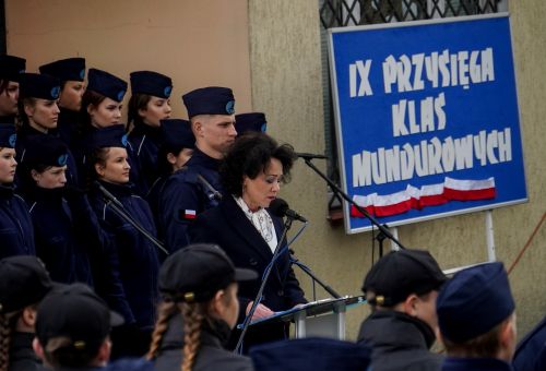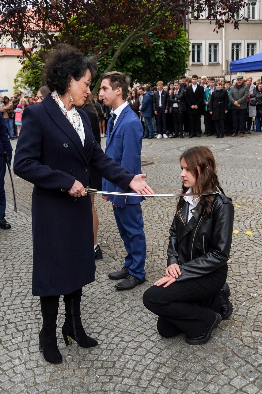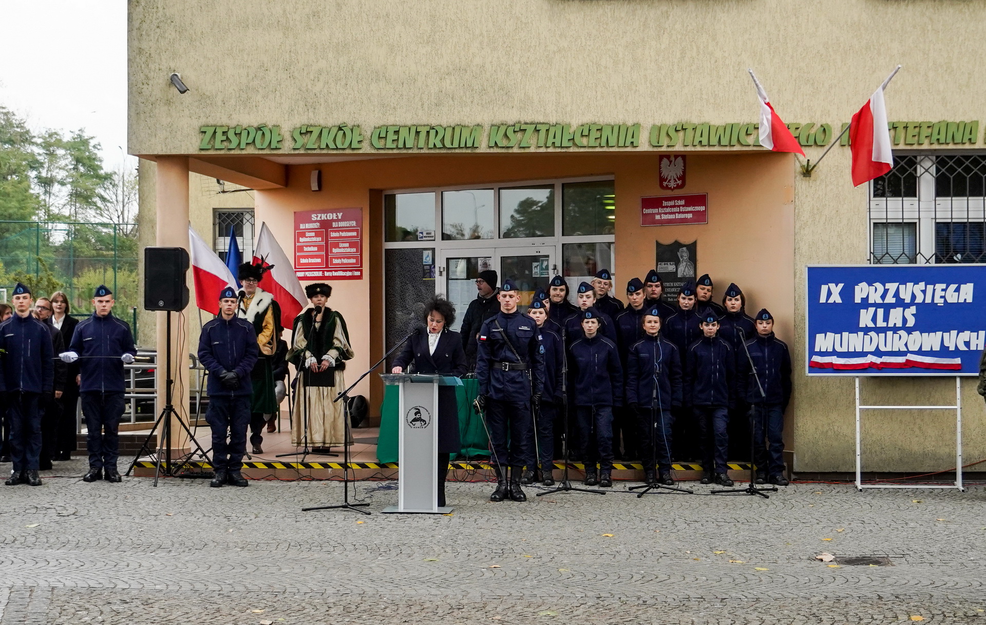 Z niezwykła serdecznością o uczniach i kierowanej przez siebie placówce mówiła dyrektor CKU Ewa Dąbrowska, podkreślając znaczenie uroczystości i symbolikę przysięgi, munduru oraz pasowania na uczniów. Najpierw przysięgę na sztandar złożyli przedstawiciele klas pierwszych mundurowych, a po nich uroczystą rotę wygłosili uczniowie pozostałych klas. Dyrektor Ewa Dąbrowska za pomocą szabli „batorówki” pasowała ich na pełnoprawnych członków szkolnej społeczności.