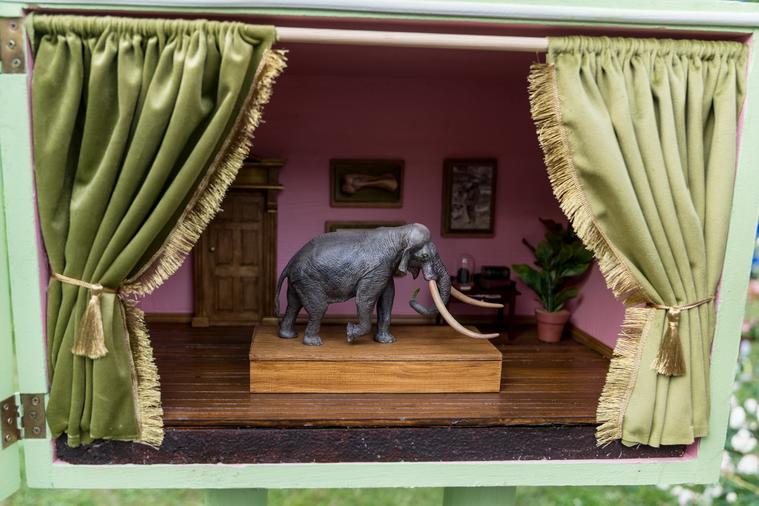 - Z przyjemnością przyjęłam zaproszenie Muzeum Okręgowego w Koninie do zaprojektowania gabloty inspirowanej zbiorami muzeum. Jeszcze bardziej rozświetliły mi się oczy kiedy dowiedziałam się, że Dział Geologiczno-Przyrodniczy posiada w swoich zbiorach jeden z największych i najbardziej kompletnych szkieletów słonia leśnego z dotychczas znalezionych w Polsce. Będąc pasjonatką paleontologii, paleoartu i geologii, nie mogłam przejść obok tego faktu obojętnie. Dysponując takim kontekstem zdecydowałam się na stworzenie w ogrodzie ozdobnej gabloty inspirowanej XIX-wiecznymi papierowymi teatrzykami lalkowymi. Głównym bohaterem instalacji uczyniłam właśnie Palaeoloxodon antiquus, którego ukazałam w stylizowanej miniaturowej muzealnej sali. Mam nadzieję, że ta scenka będzie cieszyła gości odwiedzających muzeum i spacerujących po ogrodowych alejkach - powiedziała Mirella von Chrupek.