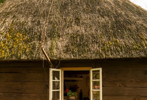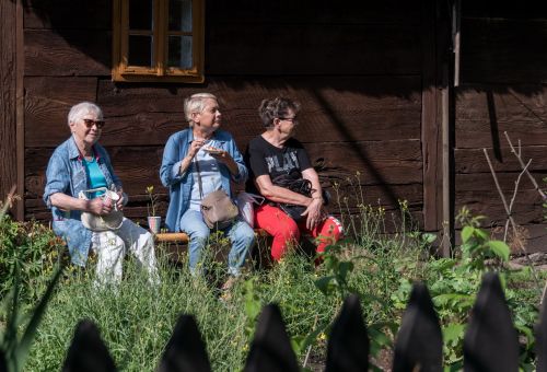 Koło skansenowej stodoły królowały pszczoły z pasieki Albina Łukasiewicza w Kamienicy.