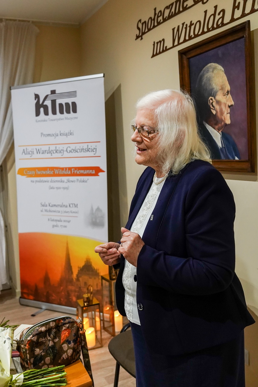 Najnowszym przejawem jej biograficznej działalności jest sporych rozmiarów książka zatytułowana „Czasy lwowskie Witolda Friemanna…”, wydana własnym sumptem pod naukową opieką Akademii Muzycznej w Łodzi. Spotkanie z Alicją Wardęcką-Gościńską odbyło się w piątkowy wieczór (9 listopada) w siedzibie najstarszej społecznej organizacji krzewiącej kulturę – Konińskiego Towarzystwa Muzycznego, prowadzącego Społeczne Ognisko Muzyczne noszące właśnie imię Witolda Friemanna.