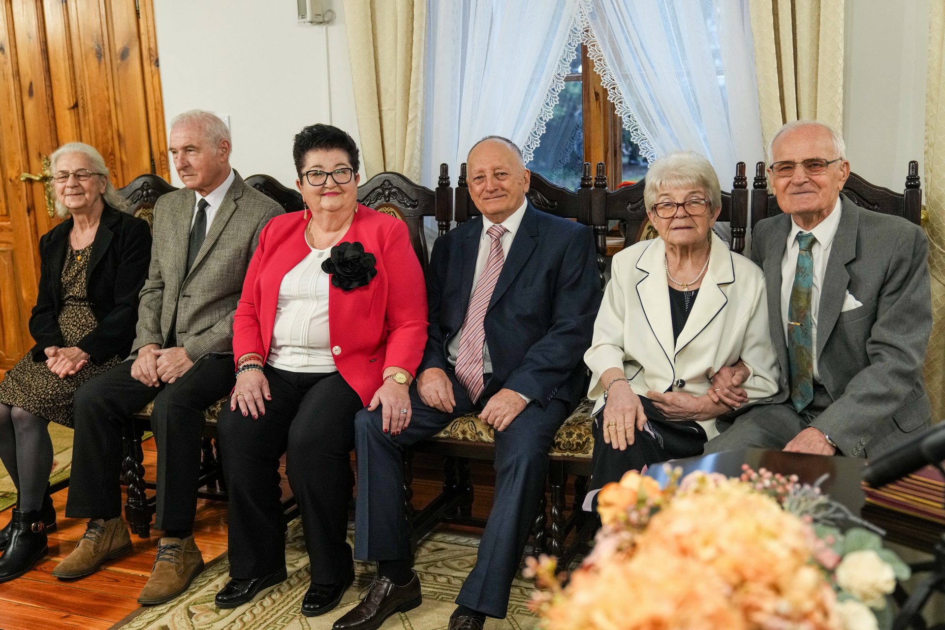 Państwa Halinę i Tomasza Sawińskich, których wspólna droga trwa już ponad 51 lat i rozpoczęła się zawarciem związku małżeńskiego 17 sierpnia 1974 roku. Państwa Marię i Grzegorza Wojciechowskich, którzy również swój związek małżeński zawarli w 1974 roku, a dokładnie 23 listopada, i od tego czasu trwają już 51 lat niezmiennie w swym małżeństwie.