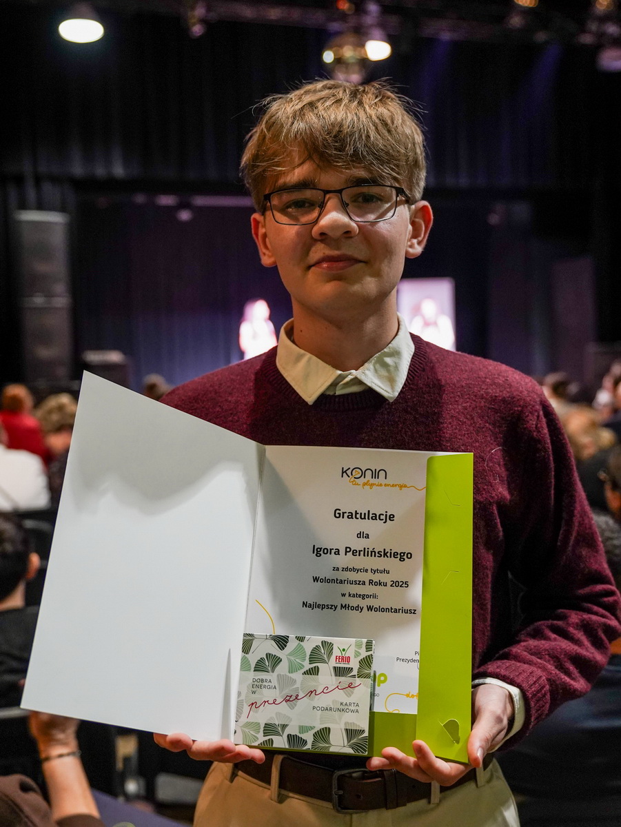 Igor Perliński to wyjątkowo aktywny społecznie uczeń, który od ponad sześciu lat inicjuje i realizuje projekty wolontariackie. Był liderem nagradzanego Złotą Nagrodą projektu „Siła Uśmiechu”, który przeciwdziałał samotności