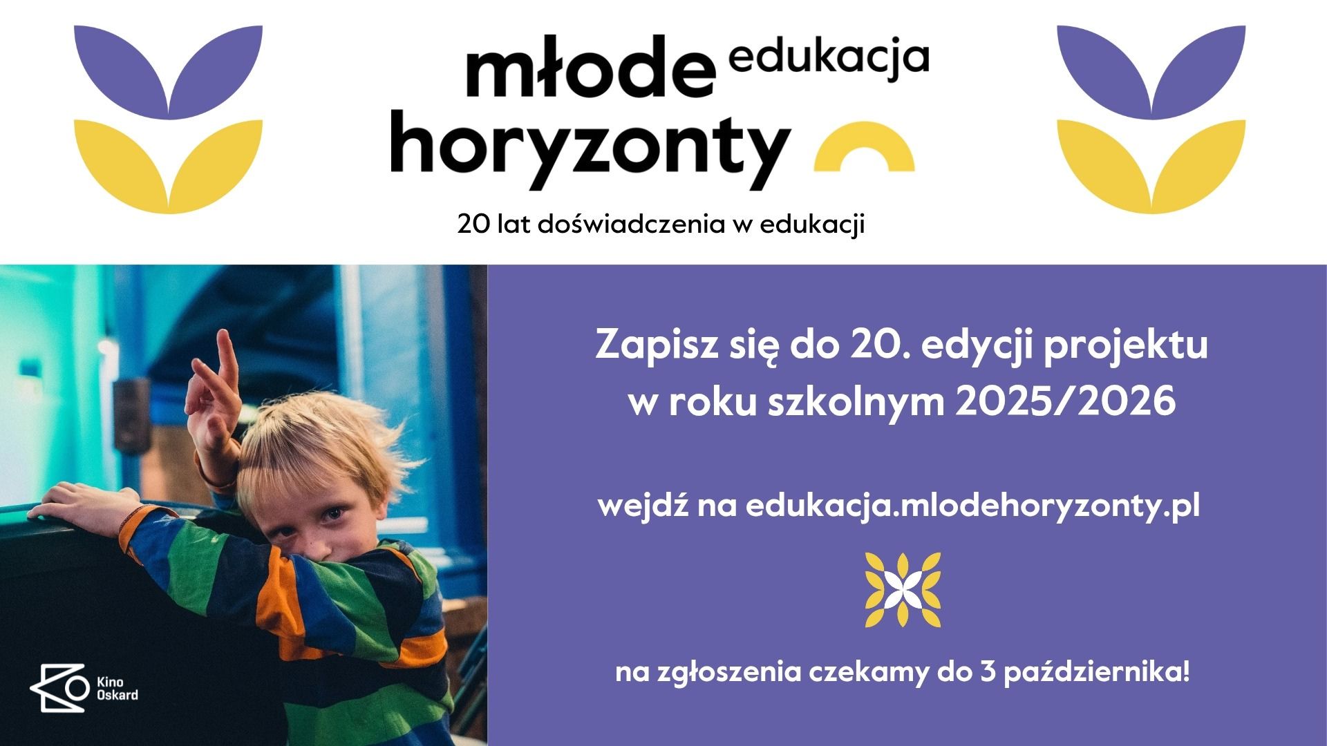 Dzięki filmom dopasowanym do wieku i prelekcjom prowadzonym przez specjalistów, uczniowie nie tylko oglądają – ale rozumieją, analizują i rozmawiają. Nauczyciel ze strony Kina Oskard może pobrać komplet narzędzi: scenariusze lekcji i materiały psychologiczne. Nie trzeba wiele, żeby zyskać jeszcze więcej – wystarczy zapisać klasę W roku szkolnym 2025/2026 odbędzie się jubileuszowa, 20. edycja projektu Edukacja Młode Horyzonty. Misja projektu, który Kino Oskard z powodzeniem realizuje od kilku lat, pozostaje niezmienna. Główne założenia to dostarczanie edukacji filmowej na najwyższym poziomie i uwrażliwianie na kino młodej publiczności. Program jest odpowiedni dla uczniów na każdym etapie edukacji, zgodny z podstawą programową Ministerstwa Edukacji Narodowej.