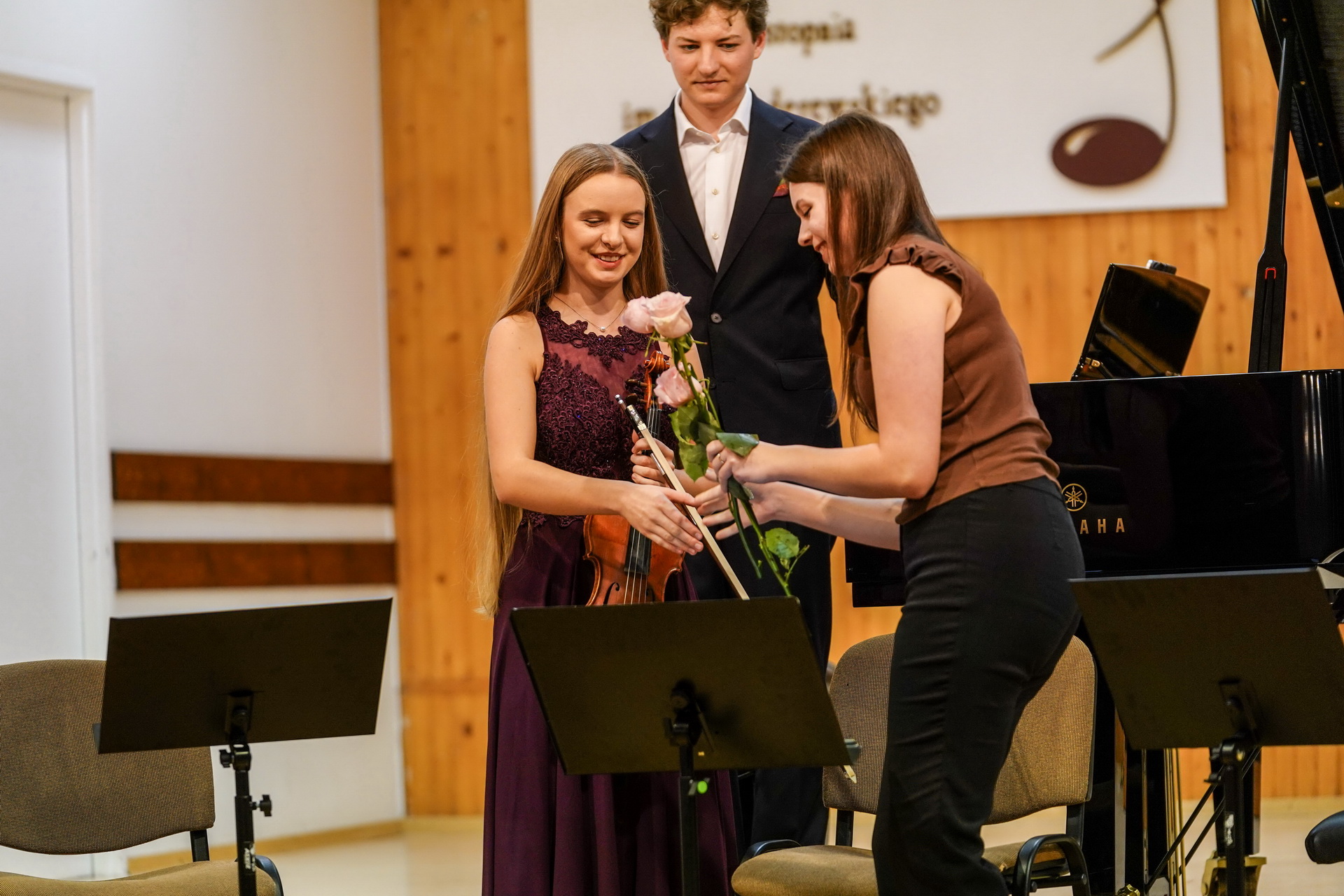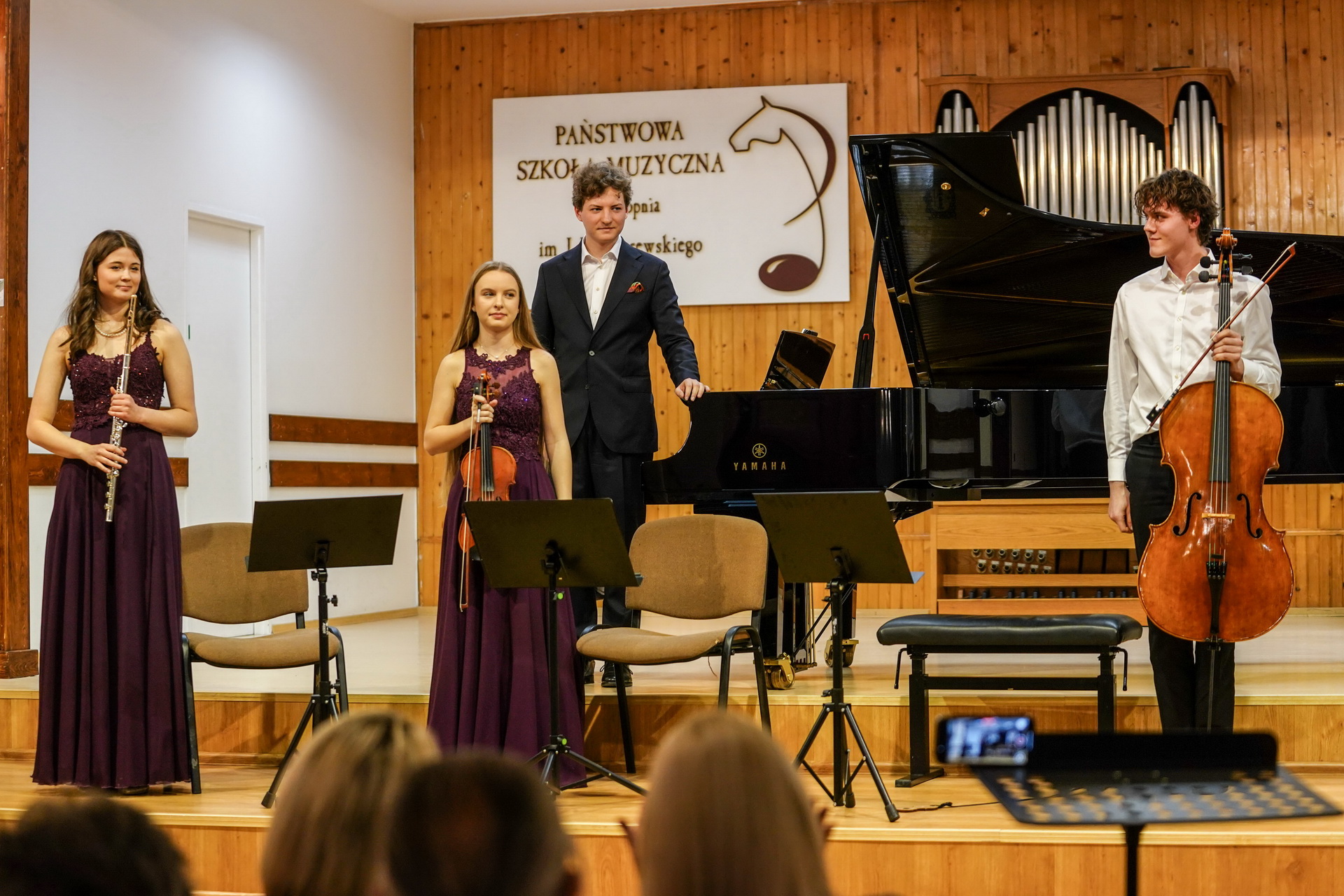 Filip Pacześny to także stypendysta Prezydenta Miasta Konina, laureat wielu nagród i wyróżnień. Zresztą jego koleżanki i kolega mają ich na koncie równie sporo. Teraz jednak intensywnie pracują, przygotowując się do matury. Młodzi muzycy zachwycili konińskich melomanów grając Beethovena, Chopina, Mendelssohna, Szostakowicza i Doplera. Występowali jako soliści oraz trio i kwartet za każdym razem zbierając owacje. Na koniec nie zabrakło bisu. Przecież nie mogło być inaczej gdy publiczność prosi o niego na… stojąco.