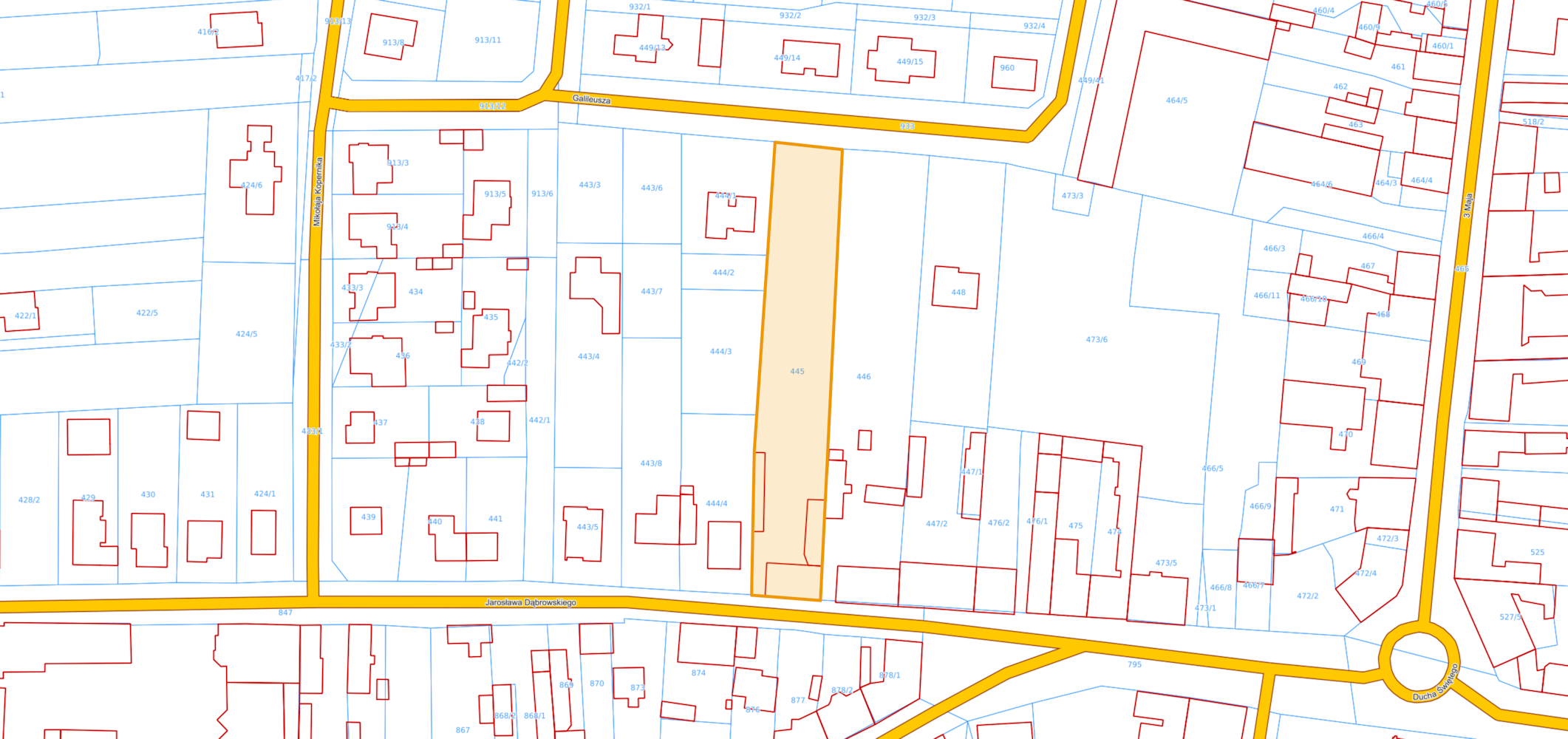 Działka o numerze 445 i powierzchni 2621 m2, obręb Starówka.