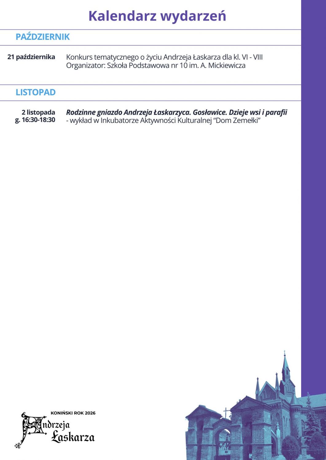 3 lutego – Akademia Mądrego Wtorku: wykład o Andrzeju Łaskarzu z Gosławic