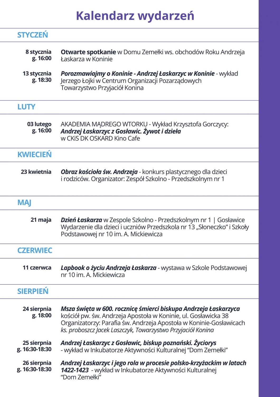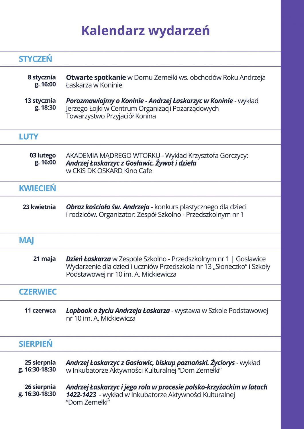 8 stycznia - Otwarte spotkanie dotyczące wydarzeń w ramach Konińskiego Roku Andrzeja Łaskarza