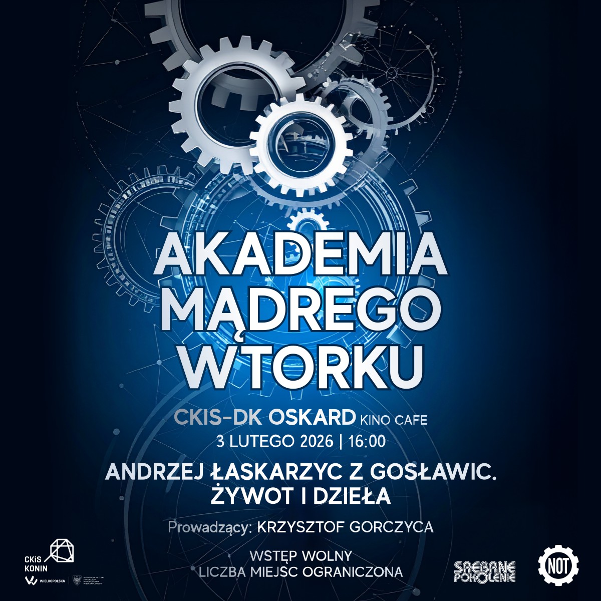 Przypomnijmy, że Akademia Mądrego Wtorku jest wspólnym projektem Centrum Kultury i Sztuki w Koninie (Srebrne Pokolenie) i Rady Federacji Stowarzyszeń Naukowo-Technicznych NOT w Koninie (Politechnika III Wieku).