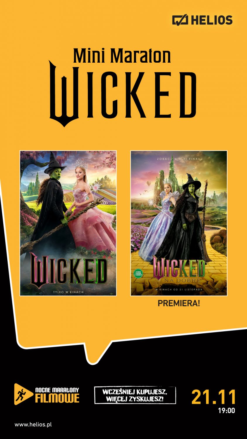 Na początek „WICKED”, elektryzująca opowieść o historii czarownic z krainy Oz i wyjątkowej przyjaźni Elphaby i Glindy. Obie bohaterki są studentkami Uniwersytetu Shiz w fantastycznej Krainie Oz. Jednak po spotkaniu z Czarnoksiężnikiem przyjaźń stanie na rozdrożu, a życie obierze zupełnie inne ścieżki. Po krótkiej przerwie, na ekranach premierowo: „WICKED: NA DOBRE”! Mimo dzielącej je przepaści, Glinda i Elphaba będą musiały po raz ostatni się zjednoczyć. Ich niezwykła przyjaźń stanie się osią, od której zależy ich przyszłość. By odmienić siebie i całe Oz na dobre. Jesteśmy przekonani, że taka dawka emocji jeszcze długo po powrocie do domu nie pozwoli Wam zasnąć.