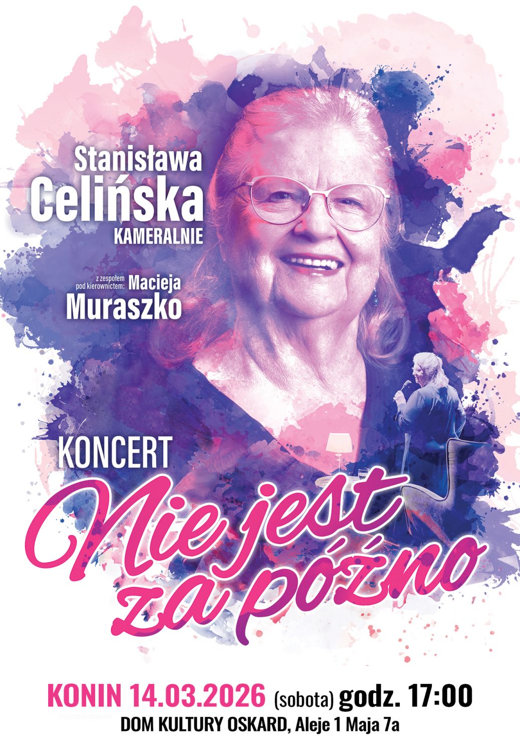Koncert znanej i cenionej Stanisławy Celińskiej z towarzyszącym Jej od lat zespołem pod kierownictwem Macieja Muraszko to jedyne w swoim rodzaju wydarzenie, na które składają się największe przeboje artystki z ostatnich lat. Utwory te są przesycone miłością, najskrytszymi pragnieniami i tęsknotami, co czyni je niezwykle poruszającymi. Ta niepowtarzalna i wyjątkowa pieśniarka potrafi swoim talentem oczarować słuchaczy w każdym wieku. Dzięki emocjonalnemu przesłaniu odzwierciedlonemu w cudownych, poetyckich słowach oraz wspaniałemu zestawieniu nut, koncert ten daje wytchnienie i skłania do zadumy. Jest on antidotum na smutek, odizolowanie, złe samopoczucie czy pochmurny dzień.