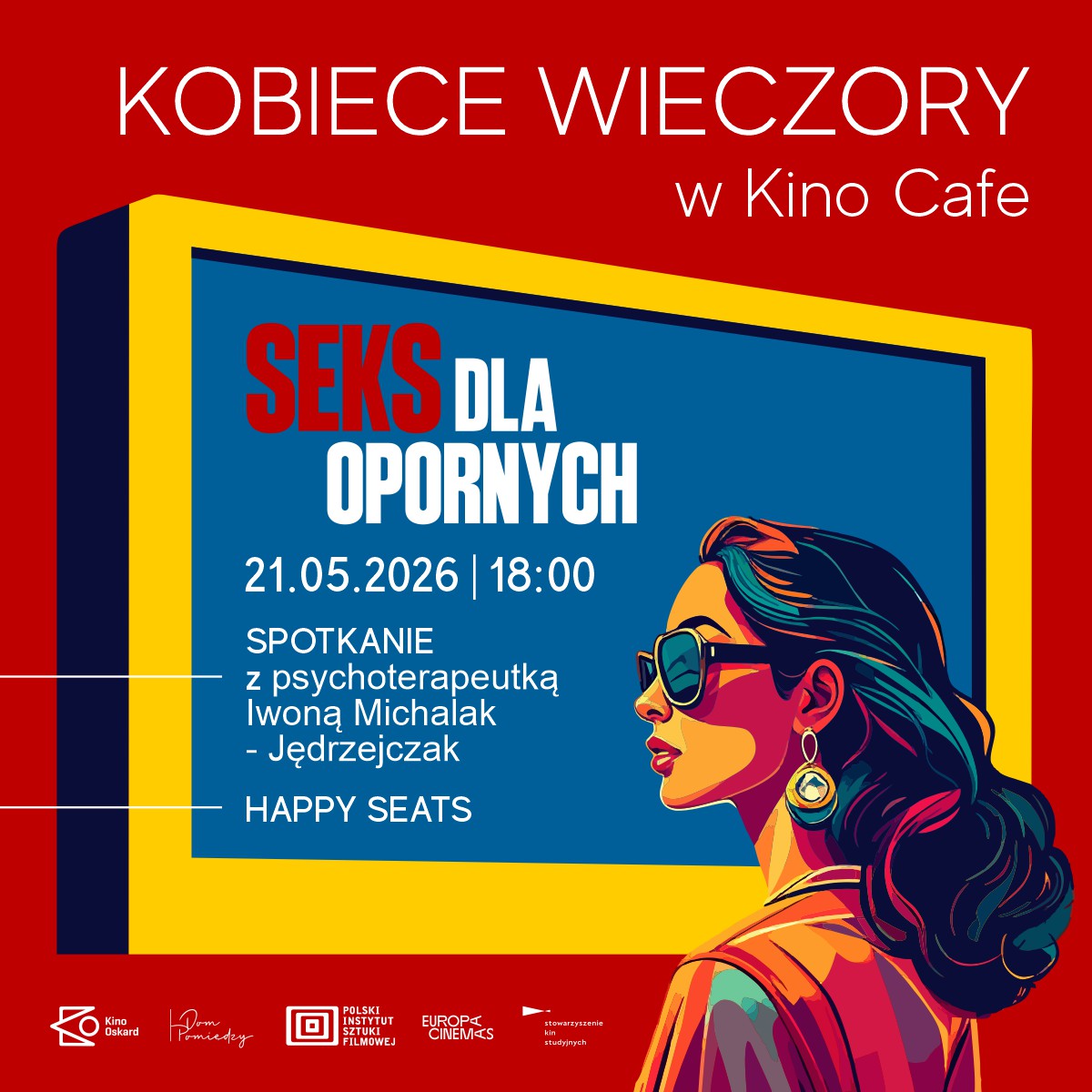 Kino Oskard zaprasza miłośniczki dobrych filmów na kolejne wydarzenie w ramach cyklu Kobiece Wieczory w Kinie Cafe. Tym razem na ekranie polska komedia „Seks dla opornych”, w której widzowie zobaczą Ilonę Ostrowską i Piotra Adamczyka. Po seansie filmoznawczyni Małgorzata Kuzdra porozmawia z psychoterapeutką Iwoną Michalak – Jędrzejczak.