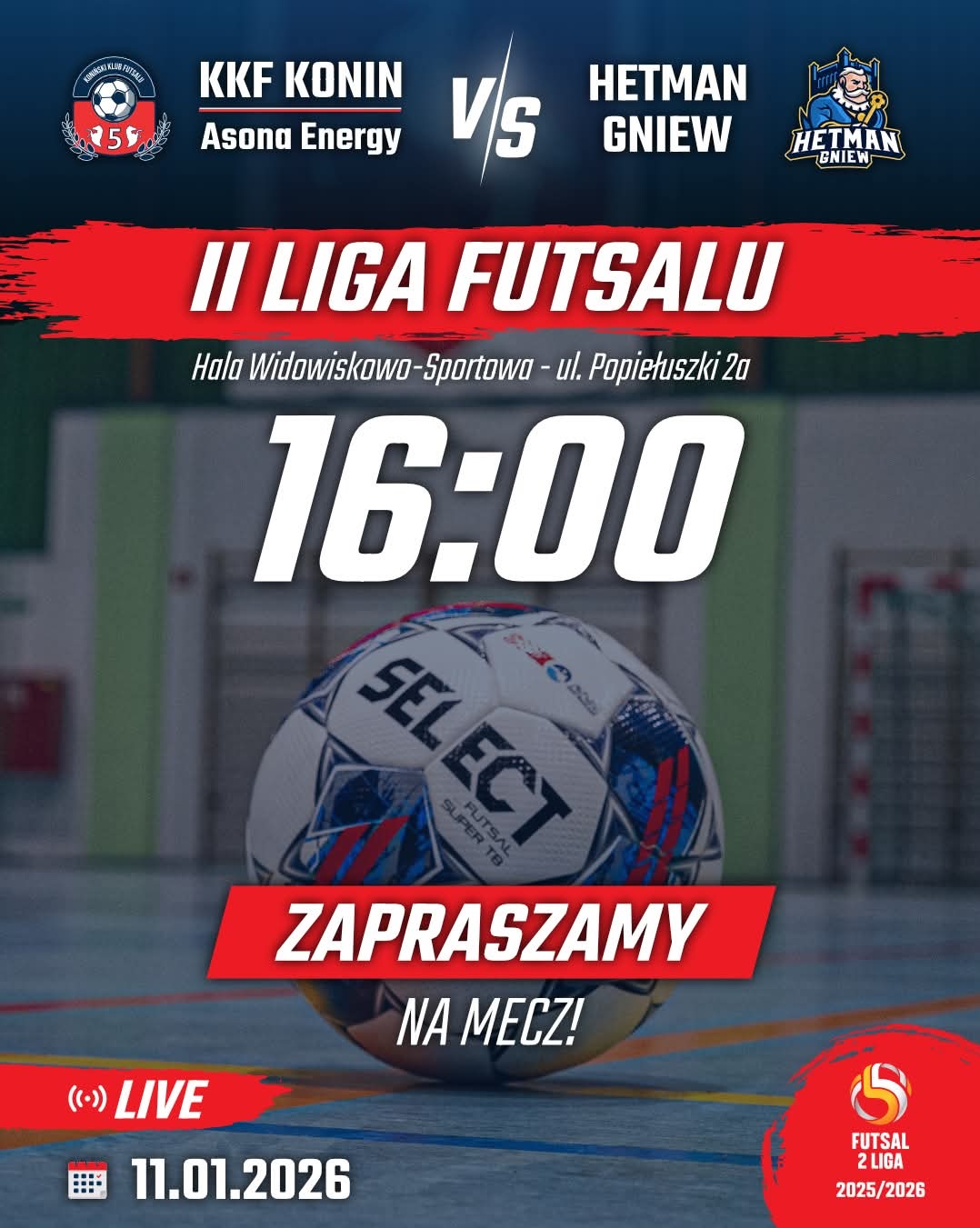 Konin. Tu płynie energia > Aktywności > Kultura > Mecz II Ligi Futsalu KKF Asona Energy Konin - Dakars Hetman Gniew