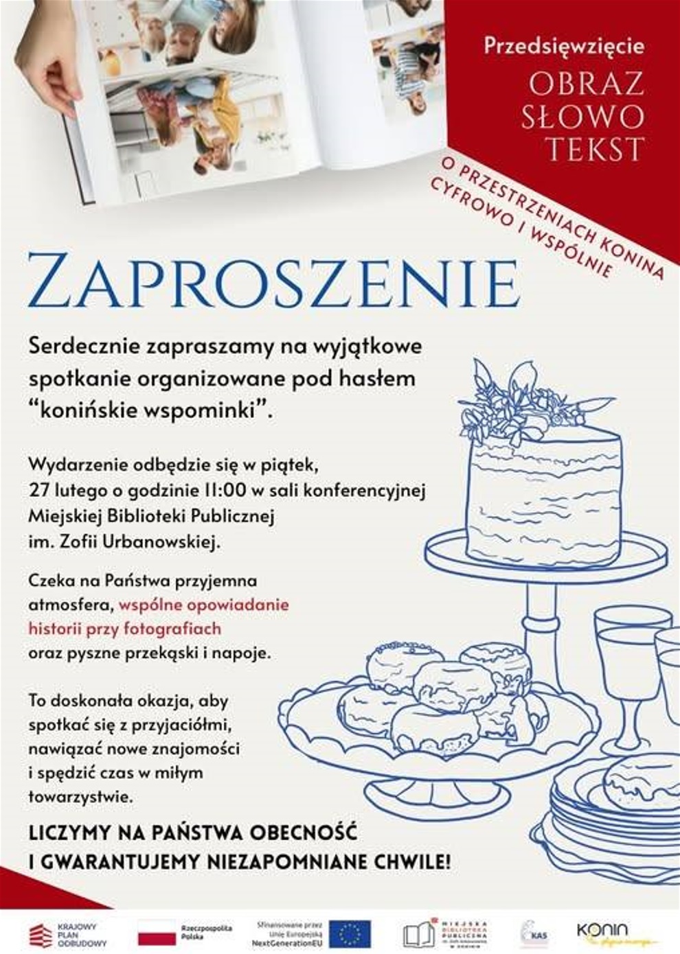 Zaproszenie skierowane jest do wszystkich, którzy posiadają w swoich albumach zdjęcia dawnego Konina – można przynieść je na spotkanie. Każda fotografia może stać się impulsem do wspólnej rozmowy, rozpoznania nieopisanych dotąd miejsc i nawiązania nowych znajomości w sąsiedzkiej atmosferze. Dla uczestników przygotowano poczęstunek oraz przestrzeń do swobodnej wymiany wspomnień.
