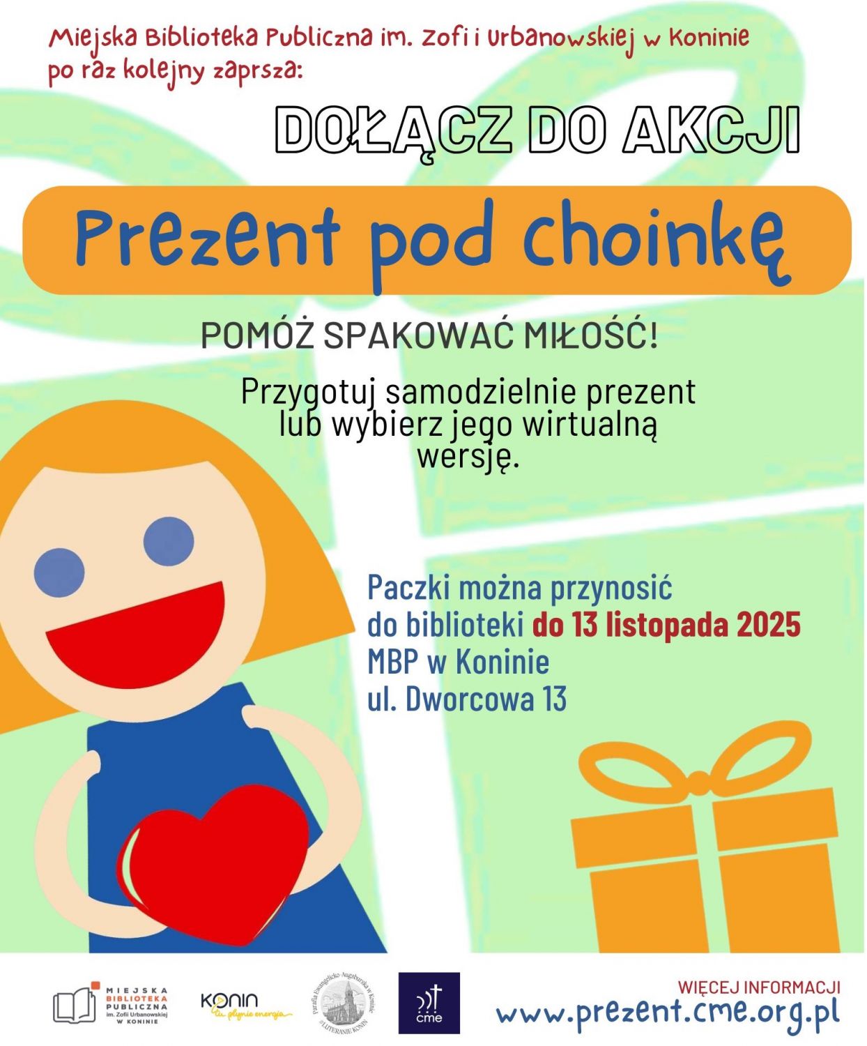 Miejska Biblioteka Publiczna im. Zofii Urbanowskiej w Koninie po raz kolejny zaprasza do włączenia się w Ogólnopolską akcję charytatywną „Prezent pod choinkę”, organizowaną przez Centrum Misji i Ewangelizacji.