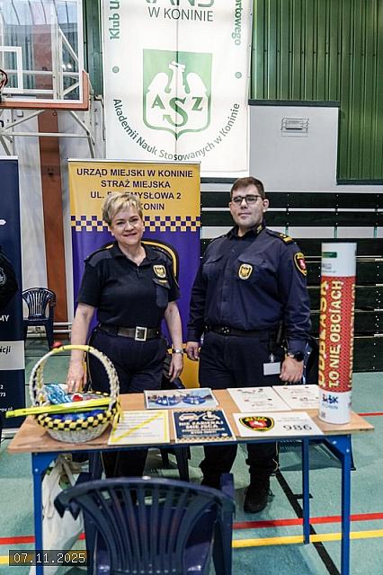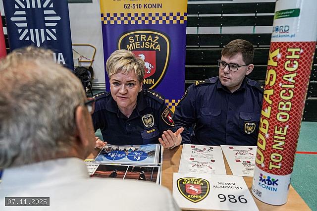 Komendant Straży Miejskiej w Koninie Dawid Grzemski oraz starszy inspektor Katarzyna Maciejewska wspólnie z pozarządowymi i lokalnymi instytucjami, organizacjami i prywatnymi firmami, włączyli się do udziału w wydarzeniu pod nazwą "SENIORIADA", które odbyło się w dniu 07 listopada 2025 roku w hali sportowej na ul. Popiełuszki 2A w Koninie.